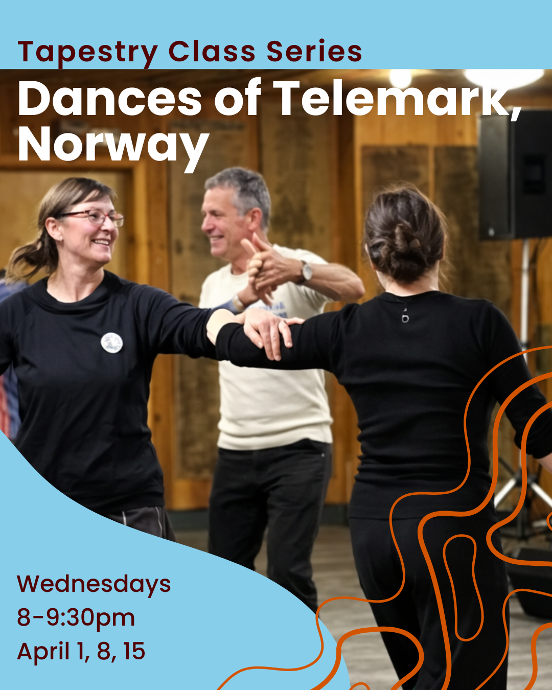 In the event of winter weather, leads of each dance will make any cancellation decisions a minimum of 4 hours before the dance starts. Notifications will be posted on Tapestry’s website, the program dance webpage, and the dance calendar, as well as on Tapestry’s social media pages. If attending a dance after a snowfall, please be mindful of checking Minneapolis Snow Emergency declarations if parking on the street.